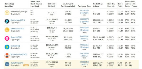 В таблице выше, подготовленной сайтом WhatToMine, представлена ситуация с точки зрения рентабельности Antminer X3 на алгоритме CryptoNight. В ней указан, например, ByteCoin (BCN), интерес к которому начал расти совсем недавно, что, вероятно, связано как раз с выпуском ASIC-майнеров X3.