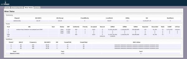 Если указать X3 на CryptoNight для NiceHash, устройство подключается и сообщает о дополнительном случайном коде, однако всё заканчивается отказом в доступе или нулевым хешрейтом. Пока, очевидно, Antminer X3 не работает с NiceHash должным образом — не помогает даже более новая прошивка. Ситуация не очень хорошая, особенно с учётом того, что осталось не так много монет с алгоритмом CryptoNight, предлагающих хорошую прибыль: большинство серьёзных коинов уже перешли на новый алгоритм CryptoNight V7, с которым ASIC-майнеры не совместимы (по крайней мере пока).