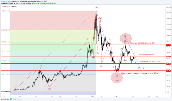 Подводя итог, следует обратить внимание на уровень в районе $500, поскольку его пробой спровоцирует новую волну продаж. В таком случае будет дан сигнал на достижение следующей поддержки в пределах $380.