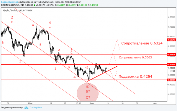В случае негативного новостного фона риппл может «просесть» до ближайшей поддержки в районе $0.4254.