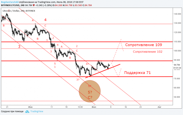Негативный сценарий для лайткоина — это очередное тестирование поддержки на уровне $71.