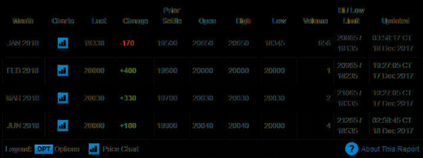 В ночь на понедельник на Чикагской товарной бирже (CME) были открыты торги фьючерсами на биткоин с погашением в январе, феврале, марте и июне 2018 года. Практически сразу после старта торговли по январским контрактам на отметке $ 20 800, цена начала падать и достигла минимума в $18 345, скорректировавшись к моменту публикации до $19 300. Впрочем, падение на 4% считается незначительным для мира криптовалют. Более длительные контракты сейчас держатся у отметки $20 000.